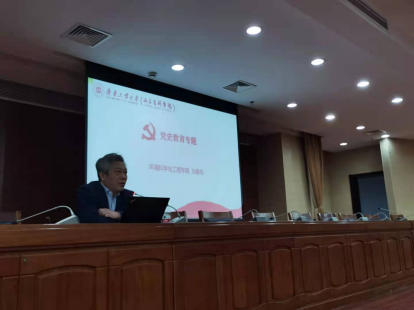 2021年4月25日,环境科学与工程学院党总支书记刘泰东和副书记崔灏环境学院党总支为2021学年上半年入党积极分子学员开展线下党课培训。培训在齐鲁工业大学(山东省科学院)图书馆一楼报告厅进行,授课内容围绕学习党史、新中国史、改革开放史、社会主义发展史相关内容并结合本单位相关学习活动展开,一百三十余名入党积极分子到场聆听。