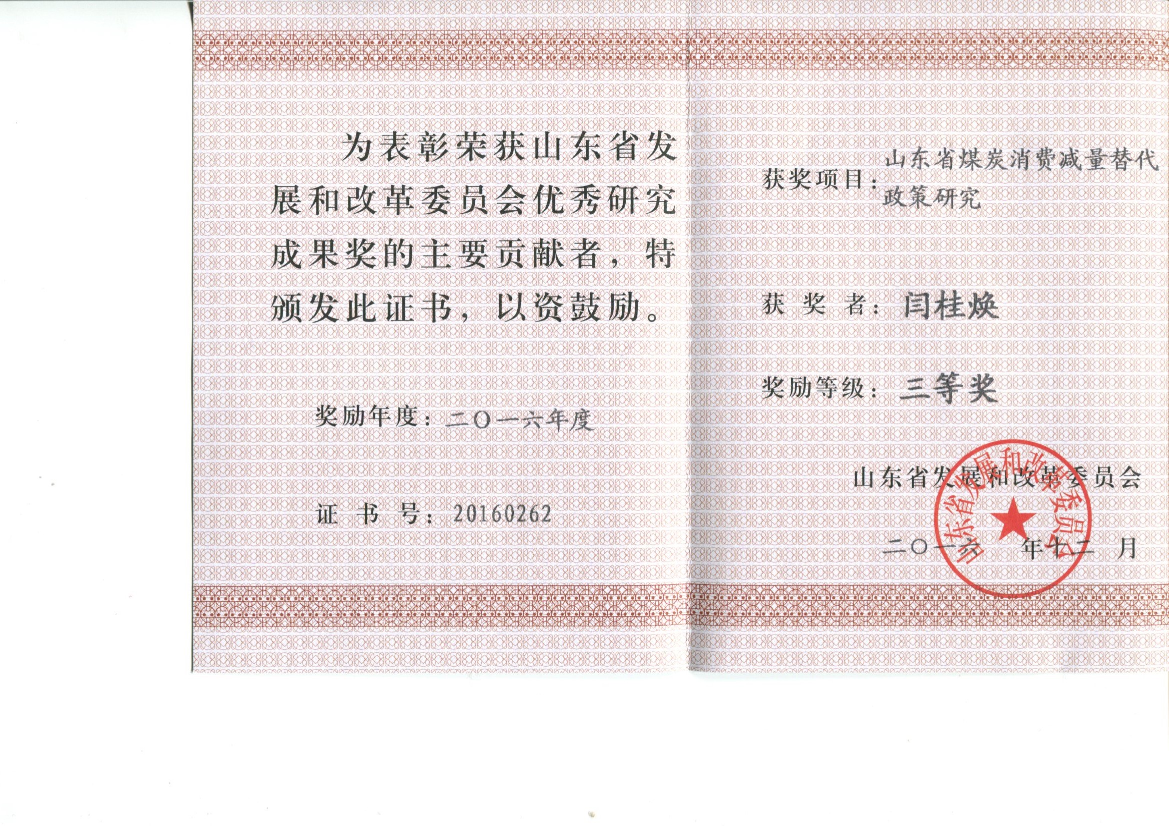 闫桂焕-山东省煤炭消费减量替代政策研究