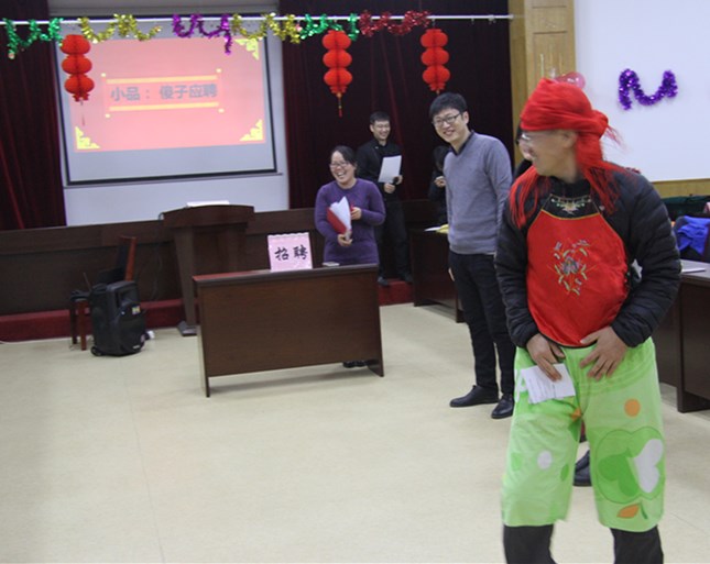 本次迎新春联欢游艺会由两部分组成,上半场为所工作人员准备的各种节目以及互动游戏,下半场为所内工作人员够级比赛。上半场由吴晓青开场热曲“I’m yours”点燃了现场欢乐的气氛,应用微生物研究室的小品《傻子应聘》赢得了观众的热烈掌声,陈贯虹的舞蹈“Crazy Night”引得观众尖叫不断。接下来生态修复研究室的小品《博士和007》,李天元的小提琴独奏“沉思”以及歌曲杨玉忠的歌曲“一壶老酒”则将联欢会推向一个又一个的小高潮。节目间穿插的各种互动游戏不但有利于活跃现场的气氛,更是有益于进一步加深所内同志们的感情。联欢游艺会的下半场够级比赛同样在一片欢声笑语中度过。整场游艺会在欢快、热烈、轻松、活跃、祥和、喜庆,全面展示了全所职工团结、合作、向上的精神面貌,达到了增强集体凝聚力的良好效果,大家决心以百倍的干劲投入到来年的科研工作之中。
