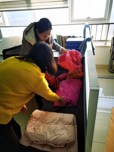 2020年12月18日,山东省科学院生态研究所第二党支部发出自愿捐赠羽绒服的倡议,收到了同事们拿来的羽绒服共十件,已于12月21日邮寄到泗水县。此次活动受到了生态所党总支以及全体同事的一致好评。