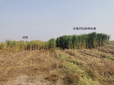 山东省科学院生态研究所研究员、该项目负责人李纪顺向专家组介绍了木霉等微生物菌剂包衣处理种子,可改善甜高粱根际土壤微生物区系结构,促进作物根系生长,达到改善盐渍土壤物理结构、持续提高土壤肥力的目的,对甜高粱、小麦都具有增产提质的作用。