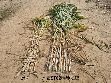 会议现场由专家组和种植户一起对试验地块进行随机采样并采用德国秸秆收割机进行实际收割测产。试验甜高粱品种为美国大力士甜高粱。经调查,在播前土壤含盐量为0.31%的实验地块,微生物包衣处理区美国大力士饲用甜高粱的平均株高311.8cm,平均单株鲜重677.3g,茎杆糖锤度12.41,机收亩产量为3981.77kg;对照组甜高粱平均株高206.3cm,平均单株鲜重348.7g,茎杆糖锤度9.07,机收亩产量为2944.7kg,微生物包衣处理组亩产量较对照组增产35.22%。专家组认为,该技术模式示范效果良好,可在东营盐渍区进行大面积推广应用。