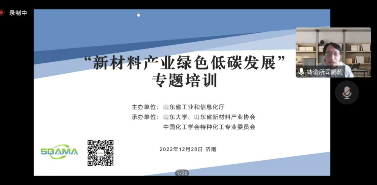 东省新材料产业协会、中国化工学会特种化工专业委员会承办的“新材料产业绿色低碳发展”专题培训在腾讯会议网络端顺利举行。来自我省新材料领域