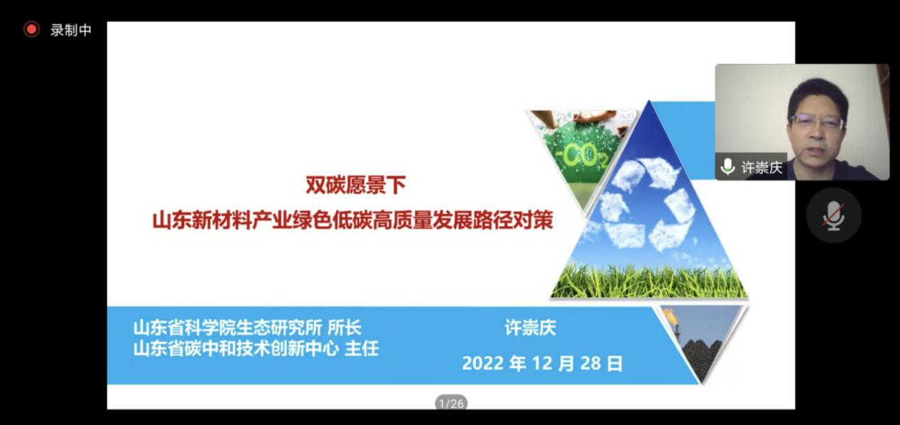 生态所许崇庆所长受邀为培训班授课,并作了题为“双碳背景下山东新材料产业绿色低碳高质量发展路径对策”的主题报告。