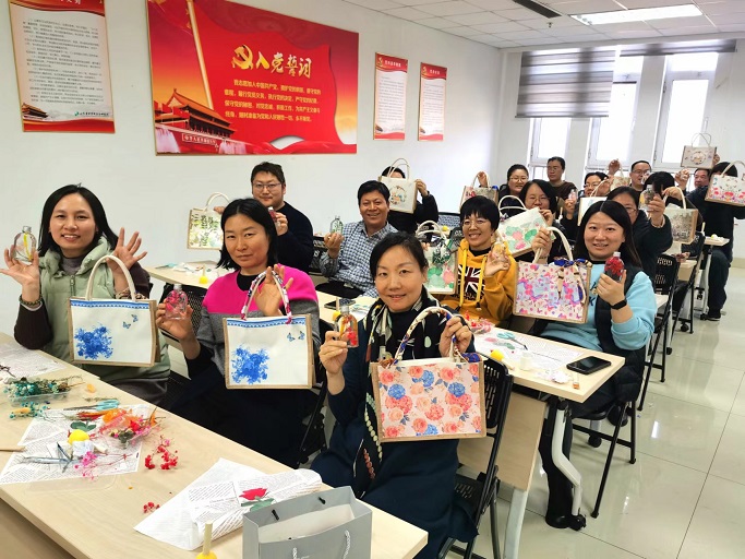 在第114个国际劳动妇女节到来之际,为丰富教职工精神文化生活,倡导低碳环保生活方式,3月6日至7日,环境学部工会、妇委会组织全体教职工开展“减塑保植”主题DIY活动,现场制作蝶骨巴特包和永生花浮游瓶,旨在倡导低碳环保生活方式,减少使用塑料制品,爱植护植。活动在彩石校区和长清校区分别进行。