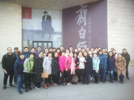 3月7日下午,生态所全体职工乘车来到山东省美术馆,参观以“齐白石大师窖藏”为主题的画展。在馆内,大家被导览机器人“豹小秘”吸引,在“豹小秘”的引领下,先后参观了齐白石先生的三十余件绘画作品,作品内容涵盖鸳鸯、群虾、白菜、萝卜、茶花、牵牛、小鸡、草蜢等。在参观过程中,职工们不断感叹齐白石先生的画作通俗易懂、下笔如神、简练生动、富有生活余味;更感叹老先生有一双善于发现美的眼睛,对生活中的小细节观察入微,将生活点滴赋予艺术气息;职工们有感敬佩老先生在耄耋之年依然笔耕不辍,保持创作激情。