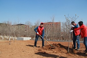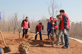 2019年3月14日,踏着初春的阳光,山东省科学院生态研究所青年志愿者组织了美化环境植树活动。