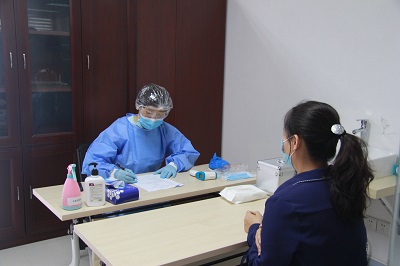 本次演练中,提前划定了临时留观点,配备齐全的消毒物资。测温专员佩戴口罩、防护服和手套等防护套装,配备专业测温枪,对807办公区域的师生进行日常体温测量和登记。检查时发现一名“学生”体温高于37.3度,测温专员立即引导其前往临时留观点(801室)等候,并及时联系学生管理人员,同时报告所在生态所疫情联络员,启动疫情防控应急处置方案。